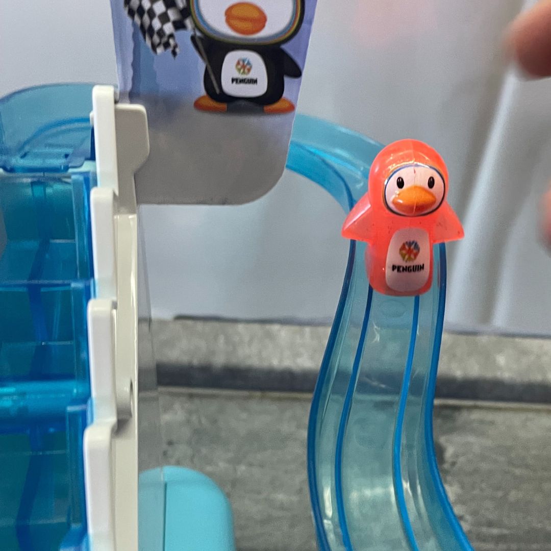 Pingvini se penju uz stepenice, klize niz stazu i vraćaju se iznova – dok istovremeno dete može da svira na šarenim klavirskim tasterima. 🎶✨